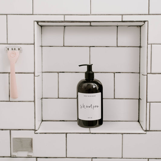 16oz Amber Plastic Shampoo Dispenser - White Label by Sweet Water Decor