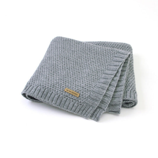Kids Logo Patched Design Solid Color Knittted Warm Blanket by MyKids-USA™