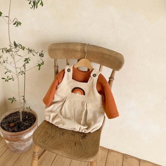 Baby Solid Color Shirt Combo Corduroy Fabric Strap Onesies Sets by MyKids-USA™