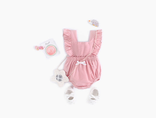 Baby Girl 1pcs Solid Color Ruffle Hem Belted Sling Design Ribbed Onesies by MyKids-USA™