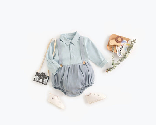 Baby Boy Solid Color False 2-Piece Design Long Sleeved Onesies Bodysuit by MyKids-USA™