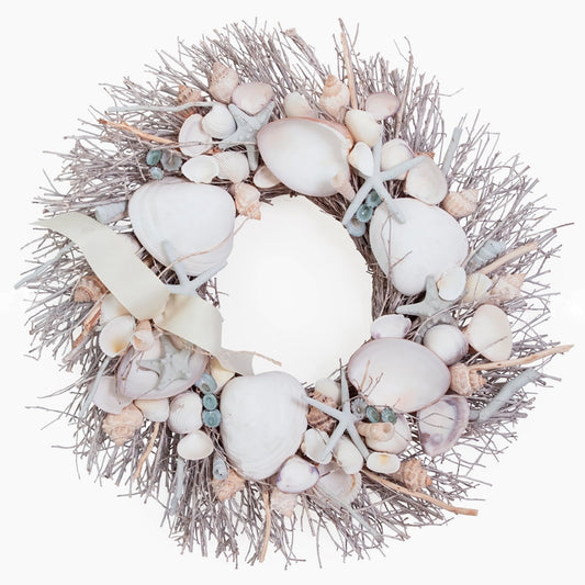 19" White & Light Blue Seashell Wreath by Andaluca Home