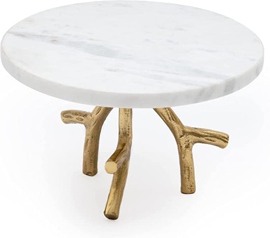 Marble Footed Pedestal Cake Stand with an Accented Gold Design by Gute by Gute Decor