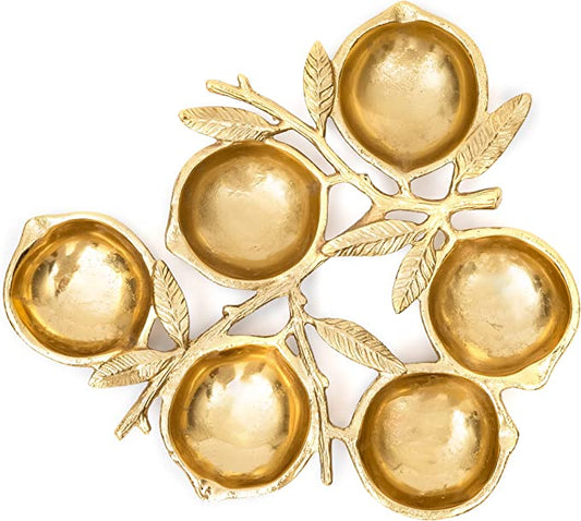 Cluster Decorative Bowls, Bright Gold Lemons, Brass - Decoration, Snack Tray Bowl, Chip and Dip by Gute by Gute Decor