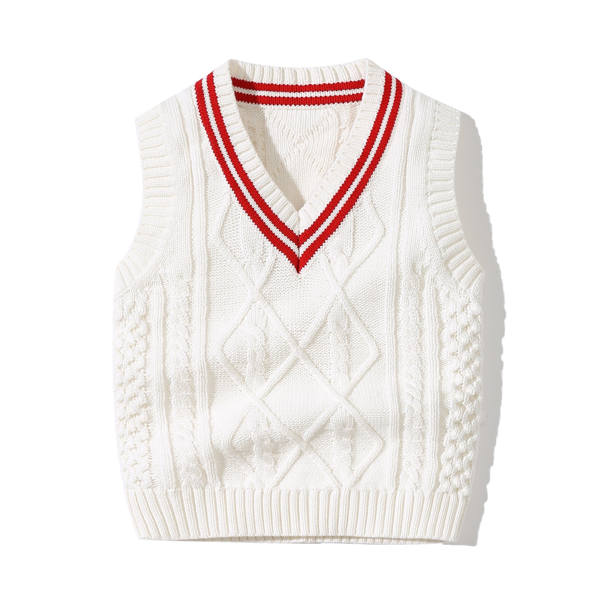 Baby Crochet Knitting Pattern Striped V-Neck Design College Style Sleeveless Vest Sweater by MyKids-USA™