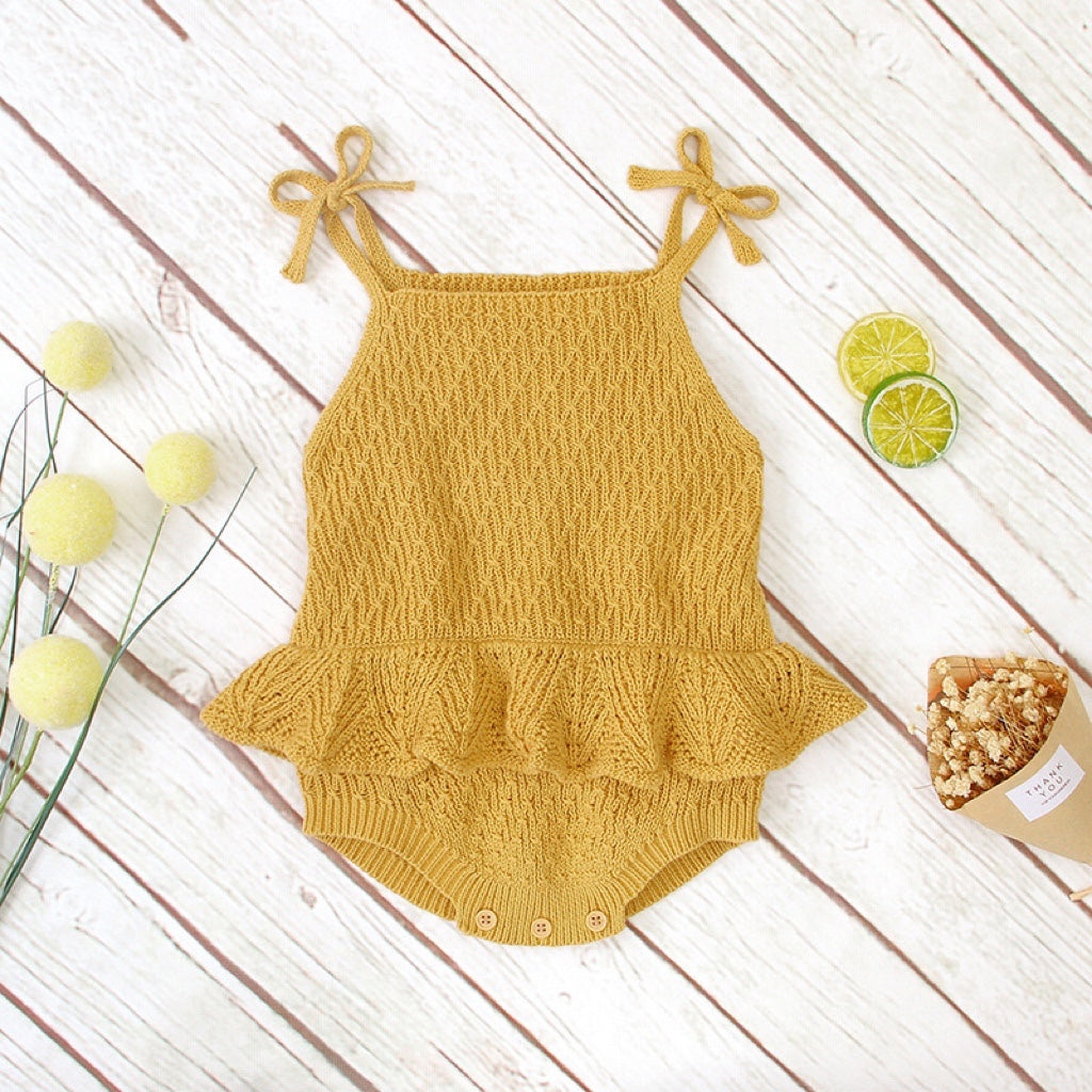 Make your little princess look oh-so-cute and stylish in this adorable 1pcs Solid Color Ruffle Hem Belted Sling Design Ribbed Onesie! With a ruffled hem, belted detail and ribbed texture, she'll be looking like a mini fashionista!