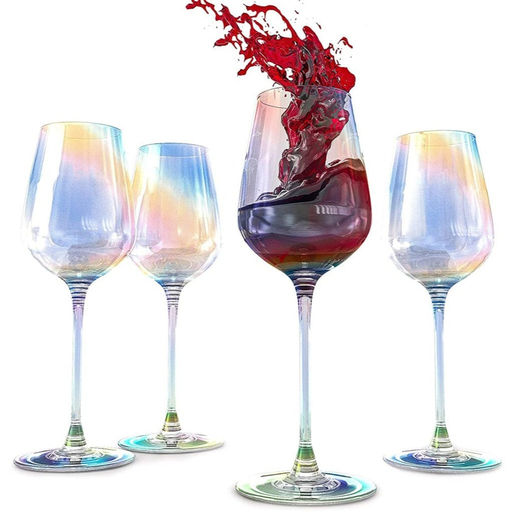 - This EXQUISITE WINE GLASS SET from Wine Savant’s Iridescent Collection would be the perfect addition to any household, bar or restaurant.The long stem gives class while the unique colors are a trendy alternative to the ordinary glass. Perfect for dinner parties or just for a glass of wine to unwind. The enchanting wine glasses are great for any occasion; they add a complimenting pearlescent glimmer to any beverage that has the pleasure of making its way into the glass.