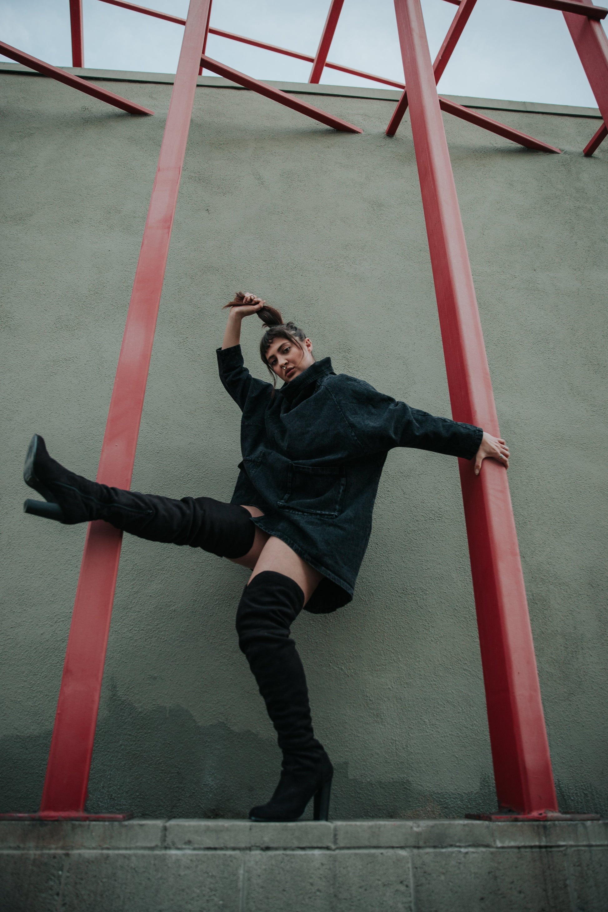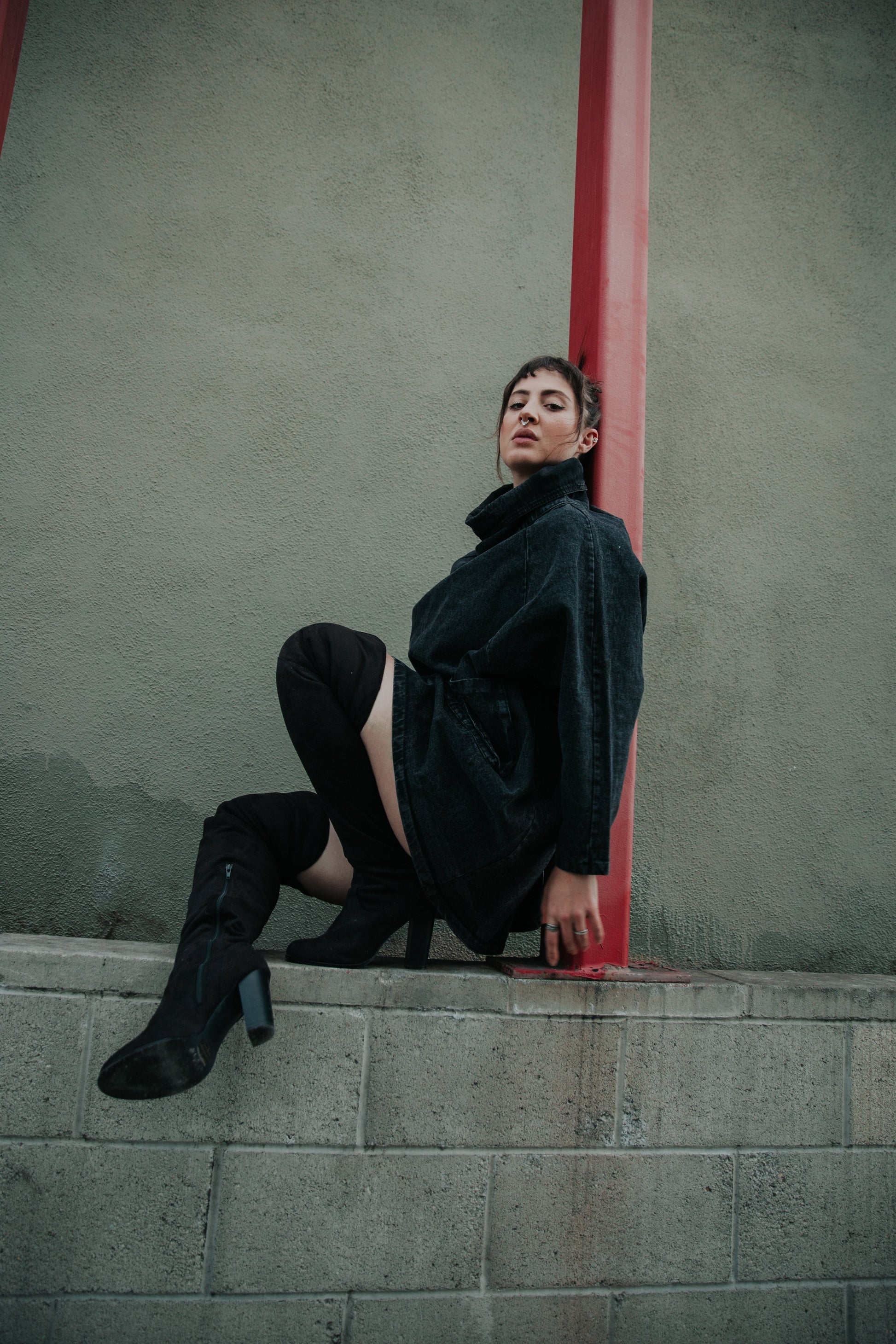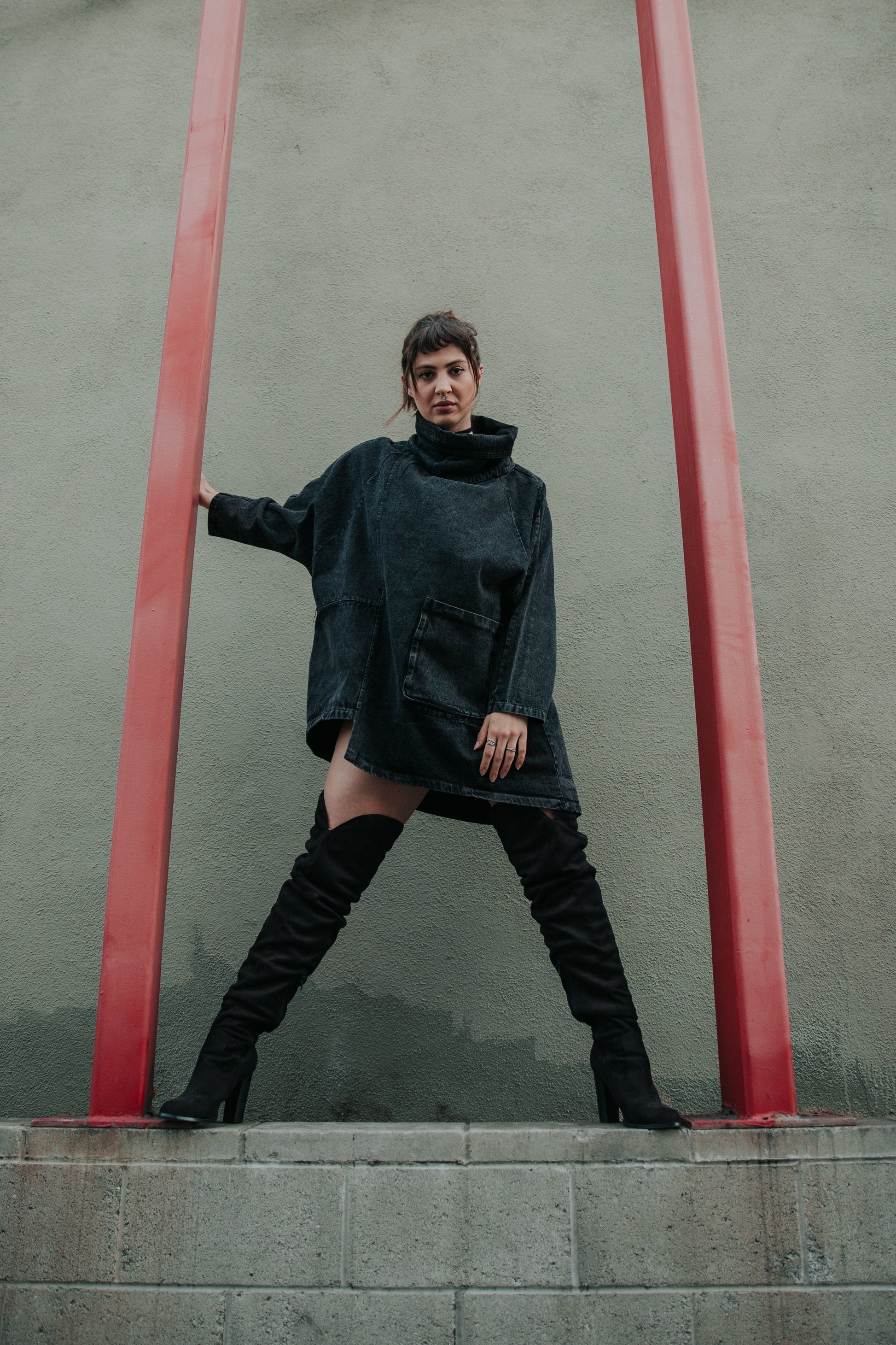 Reon Turtleneck Loose Denim Sweatshirt by Marigold Shadows