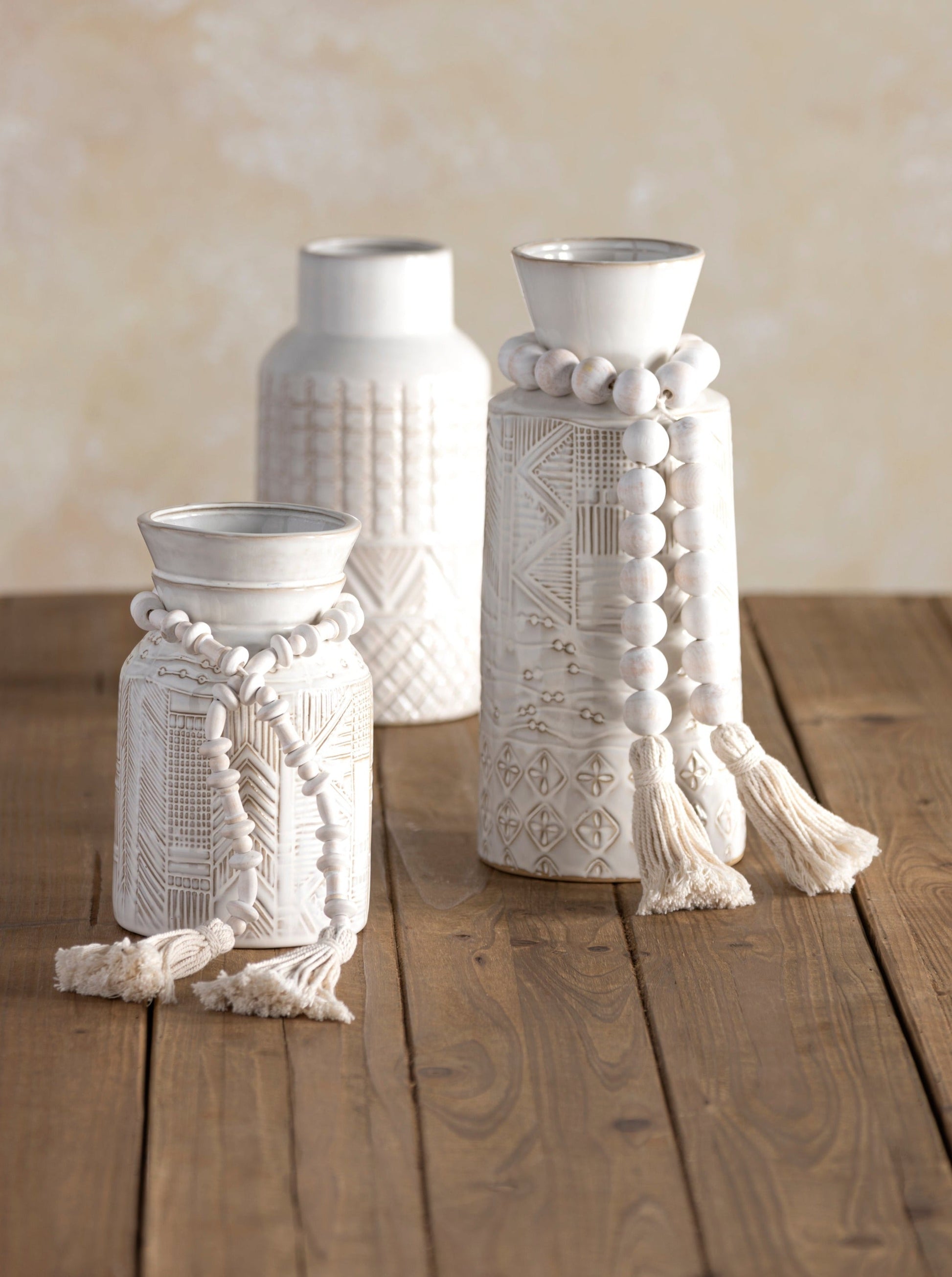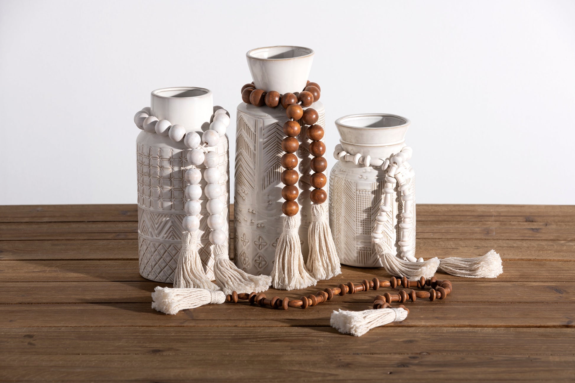 Add intention at home with our natural wooden beads. This set of 3 prayer beads is a perfect finishing accent to your home decor and invites you to slow down, be present and find connection at home. The prayer beads look great draped around vases, plant pots, mason jars, candle holders, hung on a wall, on door knobs or styled on a tray for a rustic chic feel to your home.
