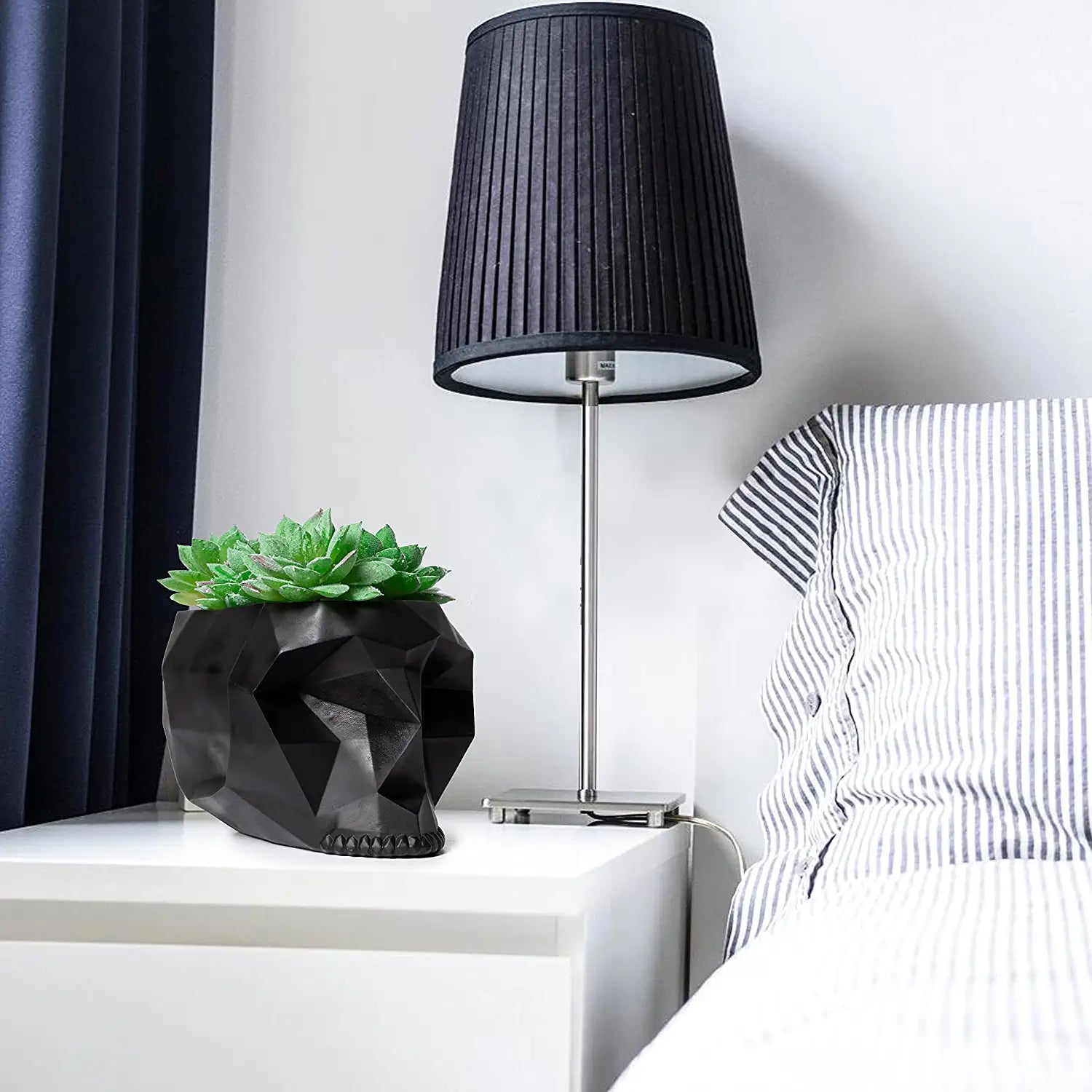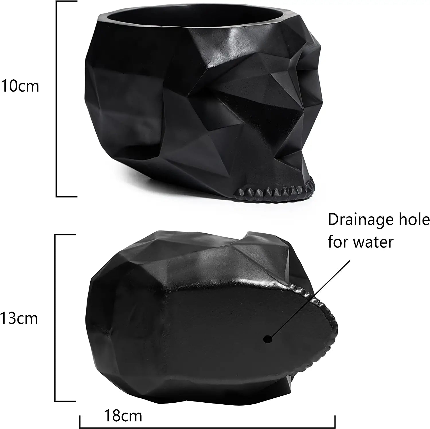 - This unique and trendy decorative planter pot is handmade, using premium poly resin. Hand painted with a matte black glaze and laser engraved to show off the details of the skull, this planter makes a chic addition to your home decor and is a great way to add personality to any room. The small size is perfect for small plants, succulents, and cacti. You'll be surprised at how much life this unexpected design can bring to your home or workspace!