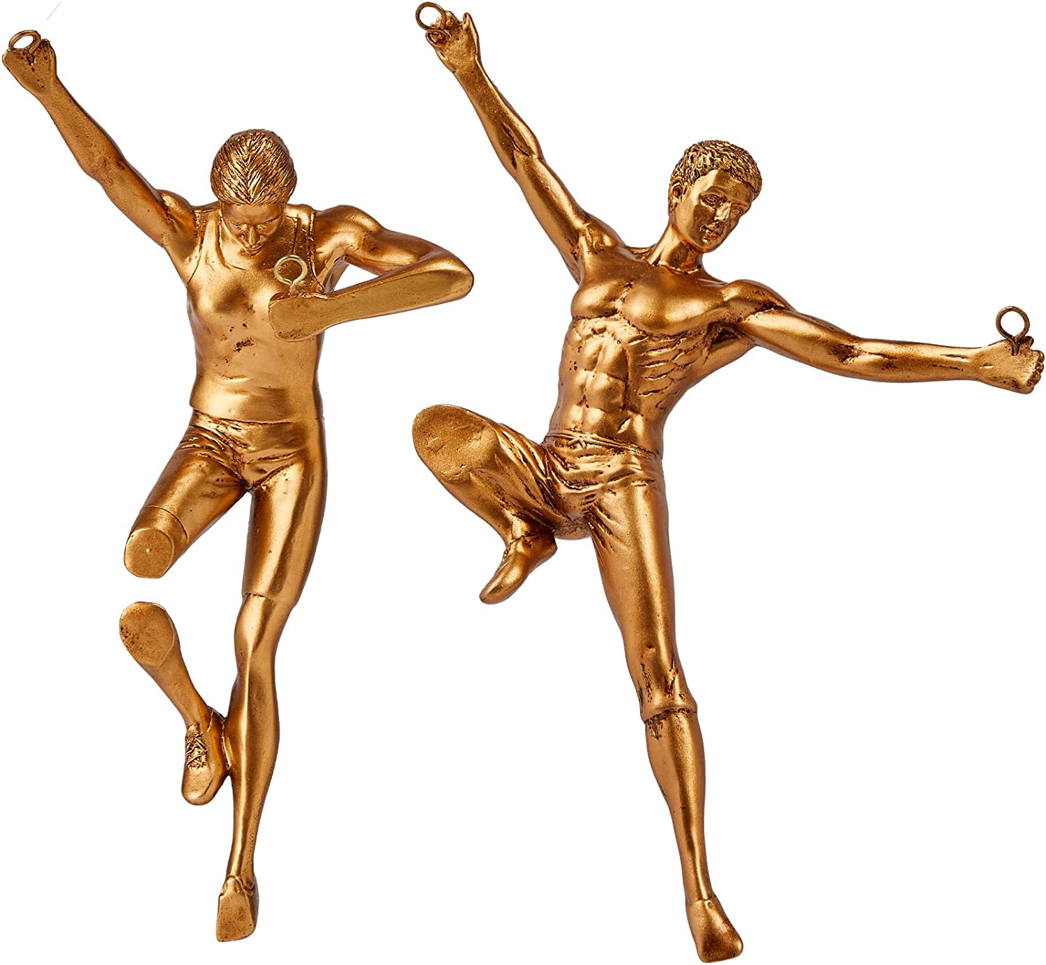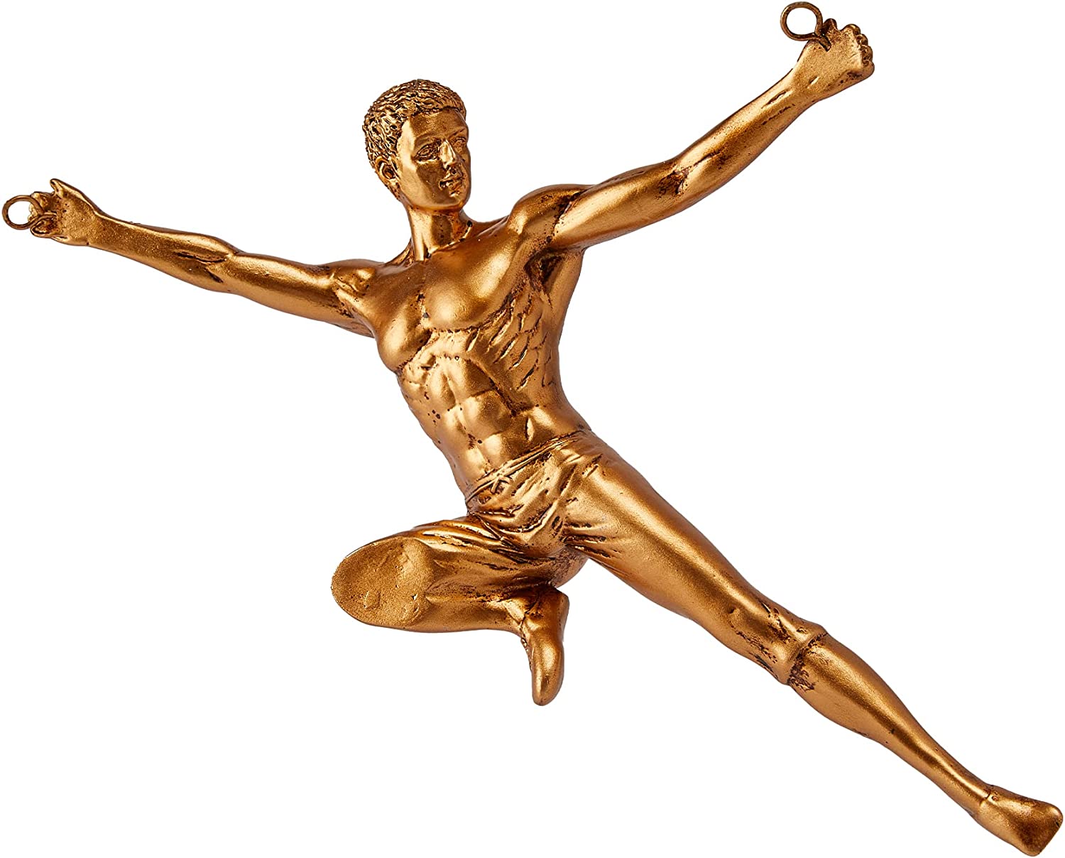- Let these sculpted resin art pieces race toward the wall like coming to life. This set could be used as sculpting art or as a decoration to make your room elegant. Sculpted with an athletic body climbing, these are a must-have. The figurine of the climbing man measures 11.5" in height, while the running woman figurine measures 11" in height - making this a sight no one can miss.