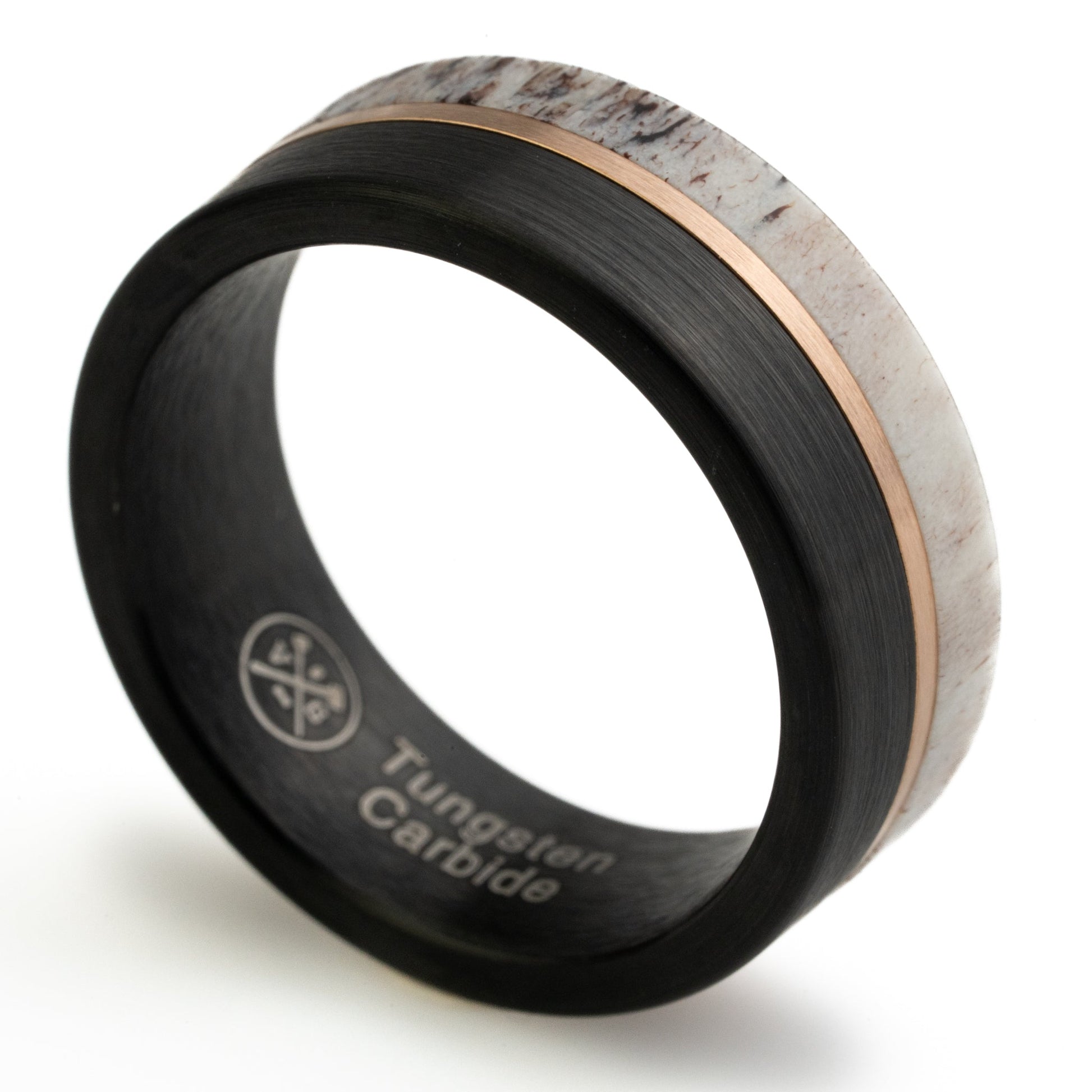 Material: Black Tungsten Carbide, Deer Antler, Copper Inlay