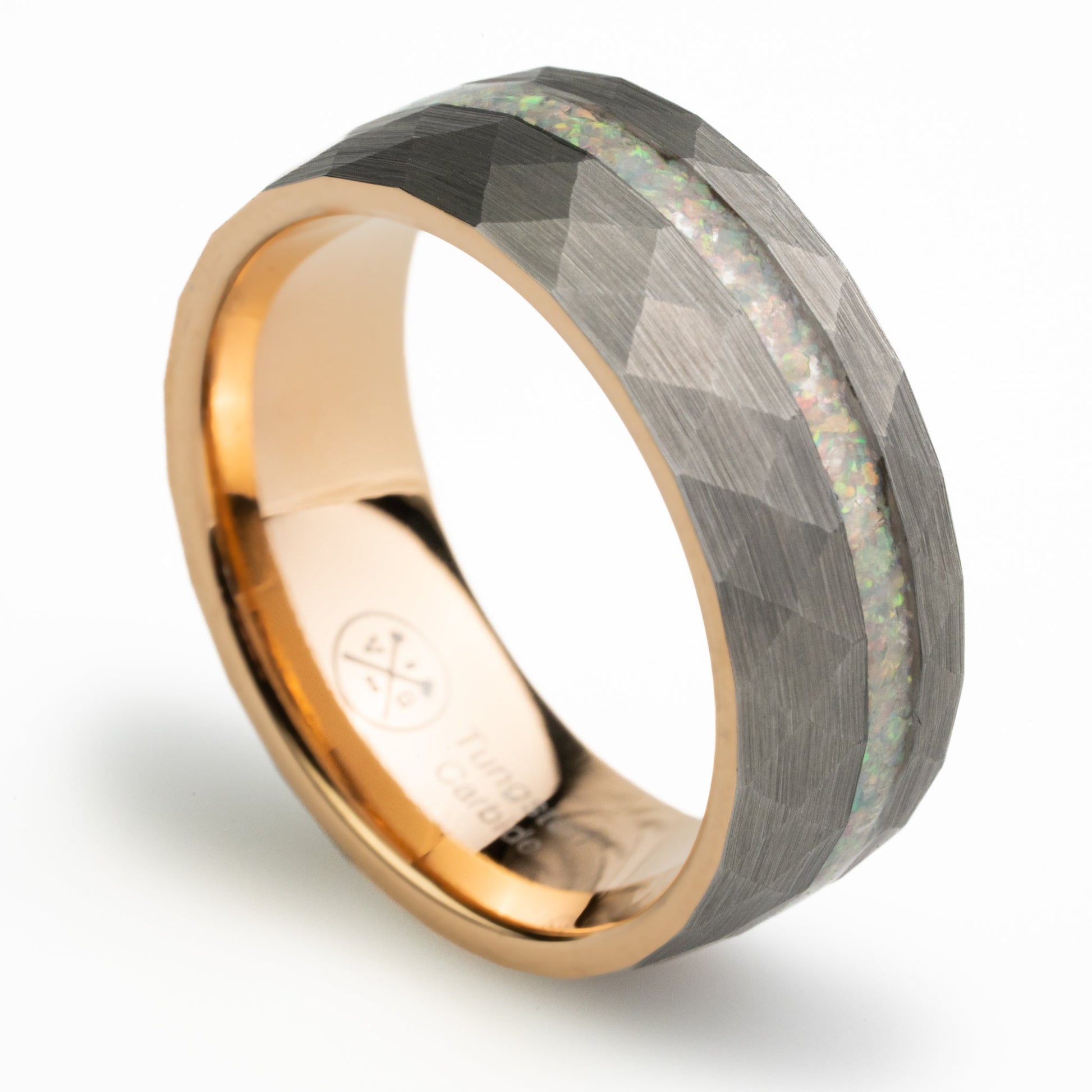 Material: Tungsten Carbide, 14kt gold plating, crushed opal